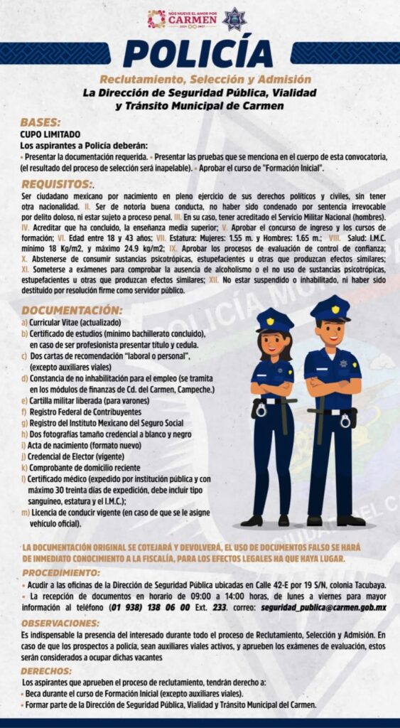 𝐂𝐨𝐧𝐯𝐨𝐜𝐚𝐭𝐨𝐫𝐢𝐚 𝐩𝐚𝐫𝐚 #𝐏𝐎𝐋𝐈𝐂𝐈𝐀 𝐌𝐔𝐍𝐈𝐂𝐈𝐏𝐀𝐋👮♀️👮 ☝️¿ 𝐐𝐮𝐢𝐞𝐫𝐞𝐬 𝐩𝐞𝐫𝐭𝐞𝐧𝐞𝐜𝐞𝐫 𝐚 𝐥𝐚 𝐏𝐨𝐥𝐢𝐜𝐢́𝐚 𝐌𝐮𝐧𝐢𝐜𝐢𝐩𝐚𝐥 𝐝𝐞 𝐂𝐚𝐫𝐦𝐞𝐧 ❓ 🗂️𝗜𝗻𝗶𝗰𝗶𝗼 𝗱𝗲 𝗿𝗲𝗰𝗲𝗽𝗰𝗶𝗼́𝗻 𝗱𝗲 𝗱𝗼𝗰𝘂𝗺𝗲𝗻𝘁𝗼𝘀: 05 […]