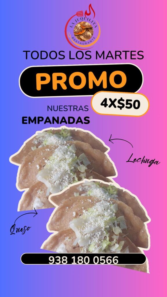 Fuente: Comidas y restaurantes del CarmenFecha: 13/01/2025MARTES DE EMPANADAS 🥟Martes rico en La Juquilita 💚Disfruta nuestras empanadas 4x$50, doraditas, calientitas […]